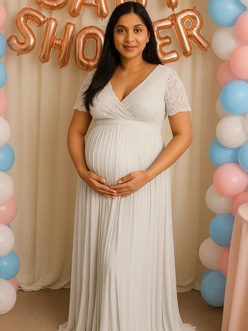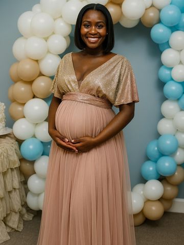 We have this dress in black, peach, nude, royal blue, sage green